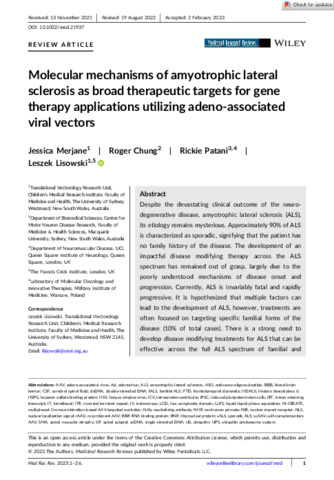Title: | Molecular mechanisms of amyotrophic lateral sclerosis as broad therapeutic targets for gene therapy applications utilizing adeno-associated viral vectors |