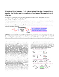 Title: | Rhodium(III)-Catalyzed C–H Alkenylation/Directing Group Migration for the Regio- and Stereoselective Synthesis of Tetrasubstituted Alkenes |