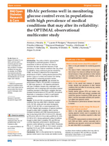 Title: | HbA1c performs well in monitoring glucose control even in populations with high prevalence of medical conditions that may alter its reliability: the OPTIMAL observational multicenter study |