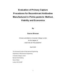 Title: | Evaluation of Primary Capture Procedures for Recombinant Antibodies Manufactured in Pichia pastoris: Method, Viability and Economics |