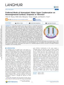 Title: | Preferred Mode of Atmospheric Water Vapor Condensation on Nanoengineered Surfaces: Dropwise or Filmwise? |