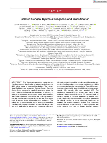 Title: | Isolated Cervical Dystonia: Diagnosis and Classification |