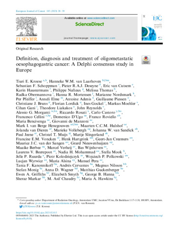 Title: | Definition, diagnosis and treatment of oligometastatic oesophagogastric cancer: A Delphi consensus study in Europe |