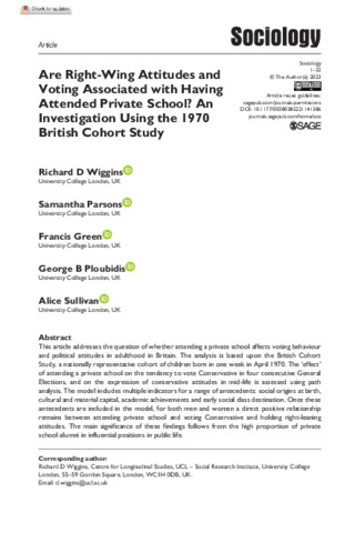 Title: | Are Right-Wing Attitudes and Voting Associated with Having Attended Private School? An Investigation Using the 1970 British Cohort Study |