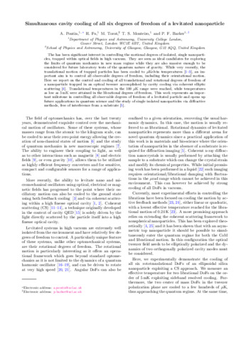 Title: | Simultaneous cavity cooling of all six degrees of freedom of a levitated nanoparticle |