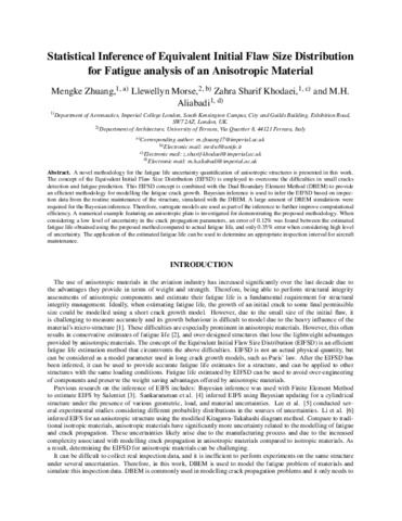 | Title: | Statistical Inference of Equivalent Initial Flaw Size Distribution for Fatigue Analysis of an Anisotropic Material |