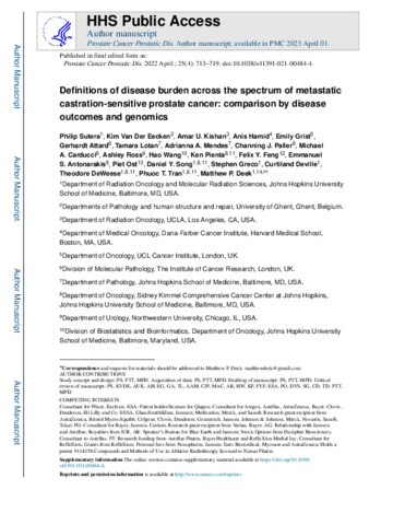 Definitions of disease burden across the spectrum of metastatic castration-sensitive prostate cancer: comparison by disease outcomes and genomics.