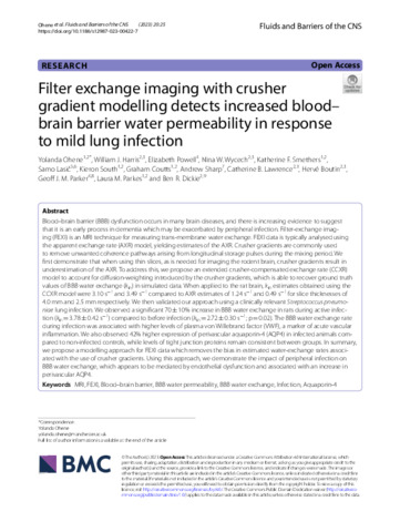 | Title: | Filter exchange imaging with crusher gradient modelling detects increased blood–brain barrier water permeability in response to mild lung infection |