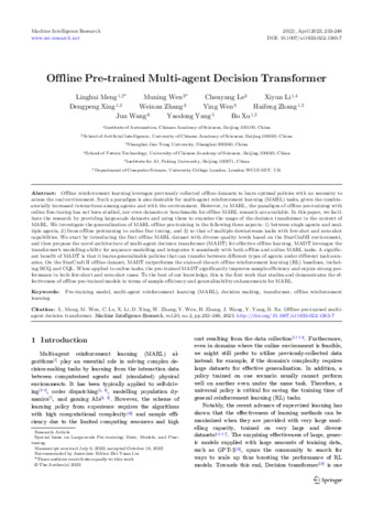 Keywords: | Pre-training model, multi-agent reinforcement learning (MARL), decision making, transformer, offline reinforcement learning |