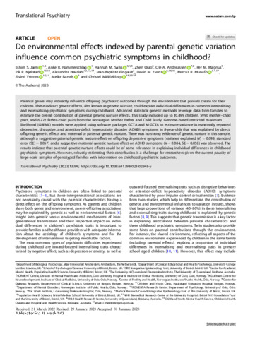 Title: | Do environmental effects indexed by parental genetic variation influence common psychiatric symptoms in childhood? |