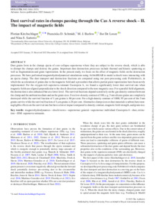 Title: | Dust survival rates in clumps passing through the Cas A reverse shock - II. The impact of magnetic fields |