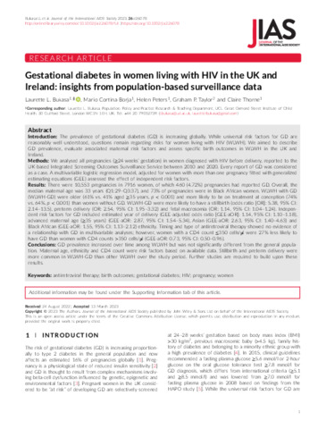 Journal of the International AIDS Society - 2023 - Bukasa - Gestational diabetes in women living with HIV in the UK and.pdf - Published Version Download (621kB) | Preview |