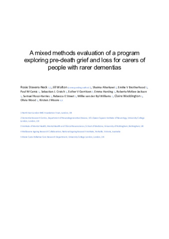 A mixed methods evaluation of a program exploring predeath grief and loss for carers of people with rarer dementias.