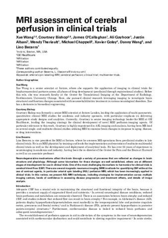 Neurodegenerative mechanisms affect the brain through a variety of processes that are reflected as changes in brain structure and physiology. Although some biomarkers for these changes are well established, others are at different stages of development for use in clinical trials. One of the most challenging biomarkers to harmonize for clinical trials is cerebral blood flow (CBF). There are several magnetic resonance imaging (MRI) methods for quantifying CBF without the use of contrast agents, in particular arterial spin labeling (ASL) perfusion MRI, which has been increasingly applied in clinical trials. In this review, we present ASL MRI techniques, including strategies for implementation across multiple imaging centers, levels of confidence in assessing disease progression and treatment effects, and details of image analysis.