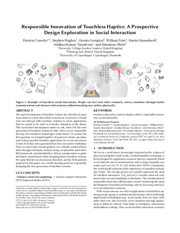 Title: | Responsible Innovation of Touchless Haptics: A Prospective Design Exploration in Social Interaction |
