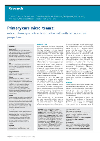 Title: | Primary care micro-teams: an international systematic review of patient and healthcare professional perspectives |