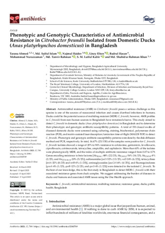 Phenotypic and Genotypic Characteristics of Antimicrobial Resistance in Citrobacter freundii Isolated from Domestic Ducks (Anas platyrhynchos domesticus) in Bangladesh.
