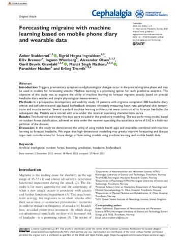 | Title: | Forecasting migraine with machine learning based on mobile phone diary and wearable data |