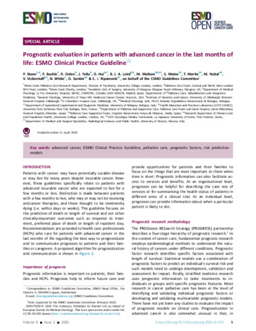 Prognostic evaluation in patients with advanced cancer in the last months of life: ESMO Clinical Practice Guideline.