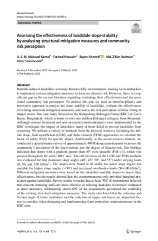 Title: | Assessing the effectiveness of landslide slope stability by analysing structural mitigation measures and community risk perception |