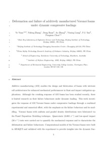 Title: | Deformation and failure of additively manufactured Voronoi foams under dynamic compressive loadings |