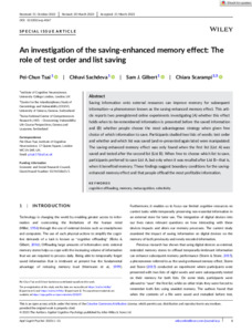 Title: | An investigation of the saving-enhanced memory effect: The role of test order and list saving |