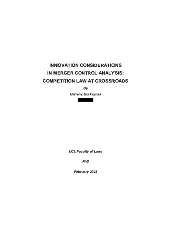 | Title: | Innovation Considerations in Merger Control: Competition Law At Crossroads |