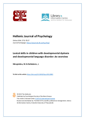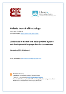 Title: | Lexical Skills in Children with Developmental Dyslexia and Developmental Language Disorder: An Overview |