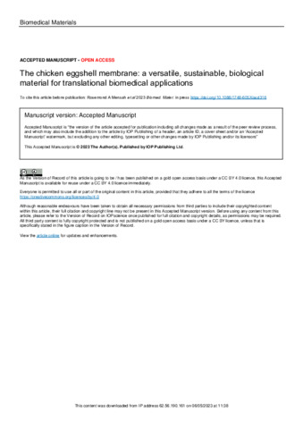 Title: | The chicken eggshell membrane: a versatile, sustainable, biological material for translational biomedical applications |