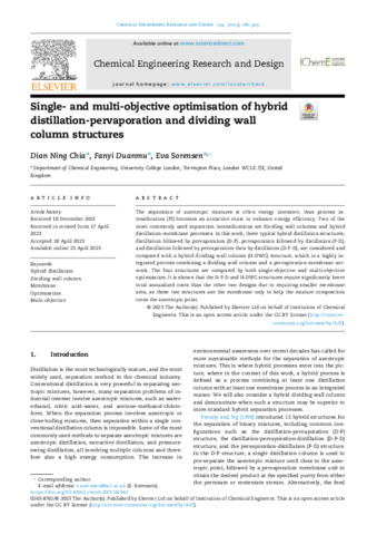 Title: | Single- and multi-objective optimisation of hybrid distillation-pervaporation and dividing wall column structures |