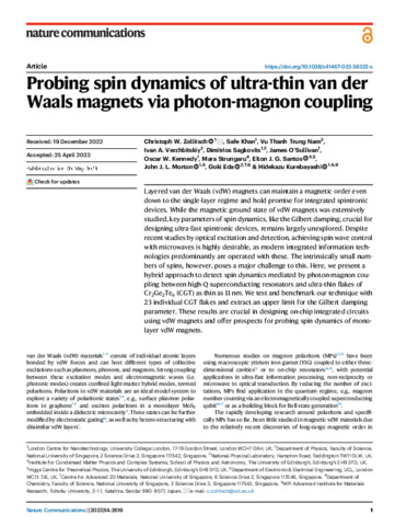 Title: | Probing spin dynamics of ultra-thin van der Waals magnets via photon-magnon coupling |