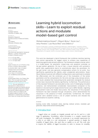 | Title: | Learning hybrid locomotion skills—Learn to exploit residual actions and modulate model-based gait control |