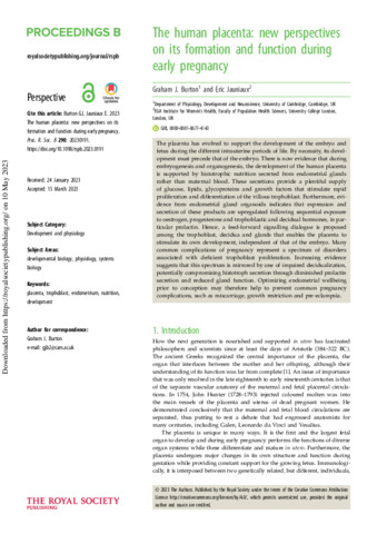 | Title: | The human placenta: new perspectives on its formation and function during early pregnancy |