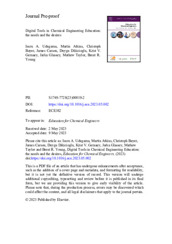 | Title: | Digital Tools in Chemical Engineering Education: the needs and the desires |