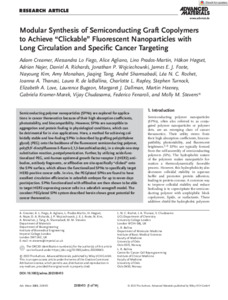 Title: | Modular Synthesis of Semiconducting Graft Co-polymers to Achieve "clickable" Fluorescent Nanoparticles with Long Circulation and Specific Cancer Targeting |