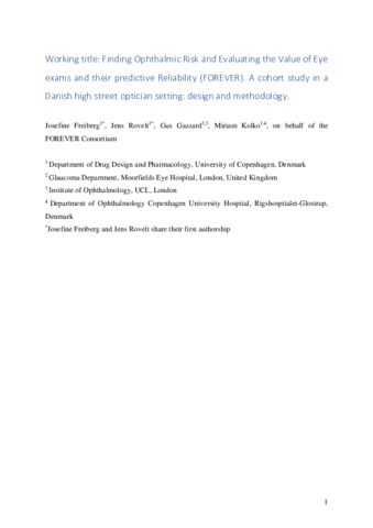 Title: | Finding Ophthalmic Risk and Evaluating the Value of Eye exams and their predictive Reliability (FOREVER)—A cohort study in a Danish high street optician setting: Design and methodology |