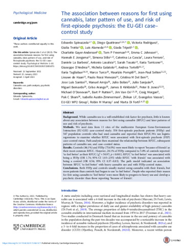 Title: | The association between reasons for first using cannabis, later pattern of use, and risk of first-episode psychosis: the EU-GEI case-control study |