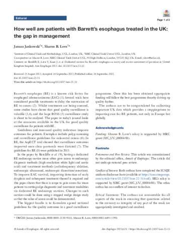 Title: | How well are patients with Barrett’s esophagus treated in the UK: the gap in management |