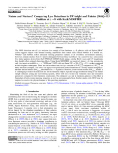 Title: | Nature and Nurture? Comparing Lyα Detections in UV-bright and Fainter [O iii]+Hβ Emitters at z ∼ 8 with Keck/MOSFIRE |
