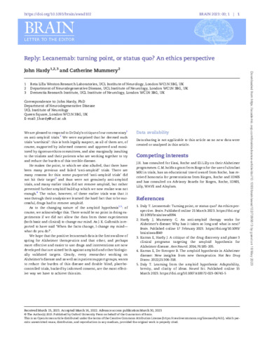 | Title: | Reply: Lecanemab: turning point, or status quo? An ethics perspective |