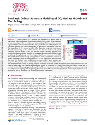Title: | Stochastic Cellular Automata Modeling of CO2 Hydrate Growth and Morphology |