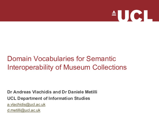 Sloane Lab: Domain Vocabularies for Semantic Interoperability of Museum Collections.