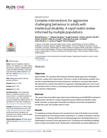 Royston_Complex interventions for aggressive challenging behaviour in adults with intellectual disability_VoR.pdf - Published Version Download (1MB) | Preview |