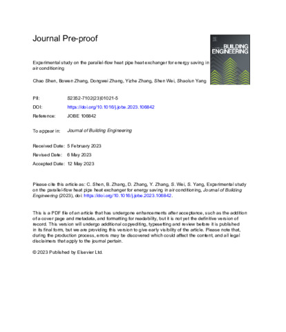 Title: | Experimental study on the parallel-flow heat pipe heat exchanger for energy saving in air conditioning |
