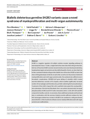 | Title: | Biallelic deleterious germline SH2B3 variants cause a novel syndrome of myeloproliferation and multi-organ autoimmunity |