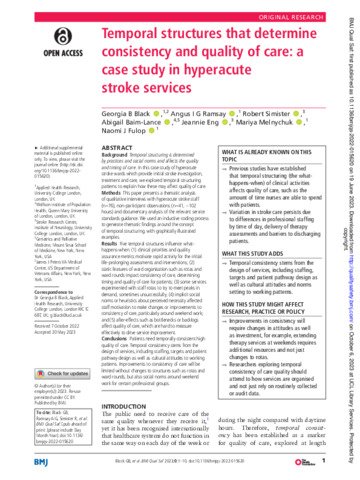 Title: | Temporal structures that determine consistency and quality of care: a case study in hyperacute stroke services |