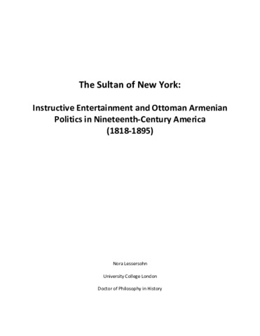 Title: | The Sultan of New York: Instructive Entertainment and Ottoman Armenian Politics in Nineteenth-Century America (1818-1895) |