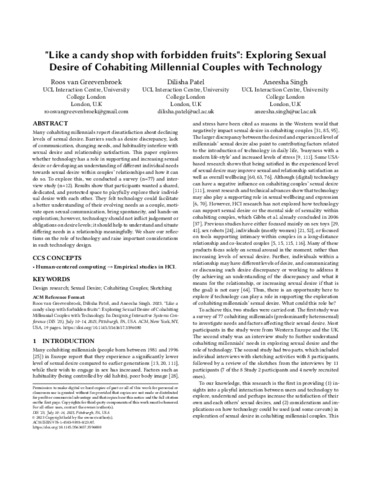 Title: | "Like a candy shop with forbidden fruits": Exploring Sexual Desire of Cohabiting Millennial Couples with Technology |