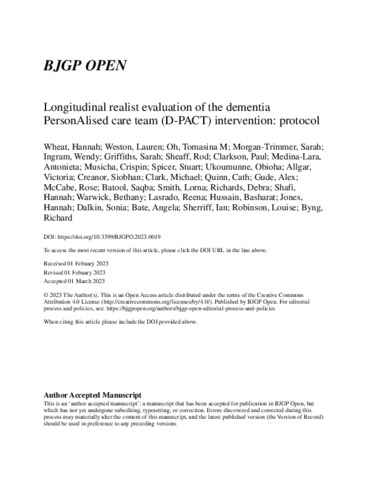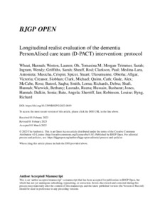 Title: | Longitudinal realist evaluation of the dementia PersonAlised care team (D-PACT) intervention: protocol |