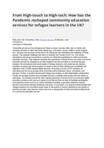 Title: | From High-touch to High-tech: How has the Pandemic reshaped community education services for refugee learners in the UK? |